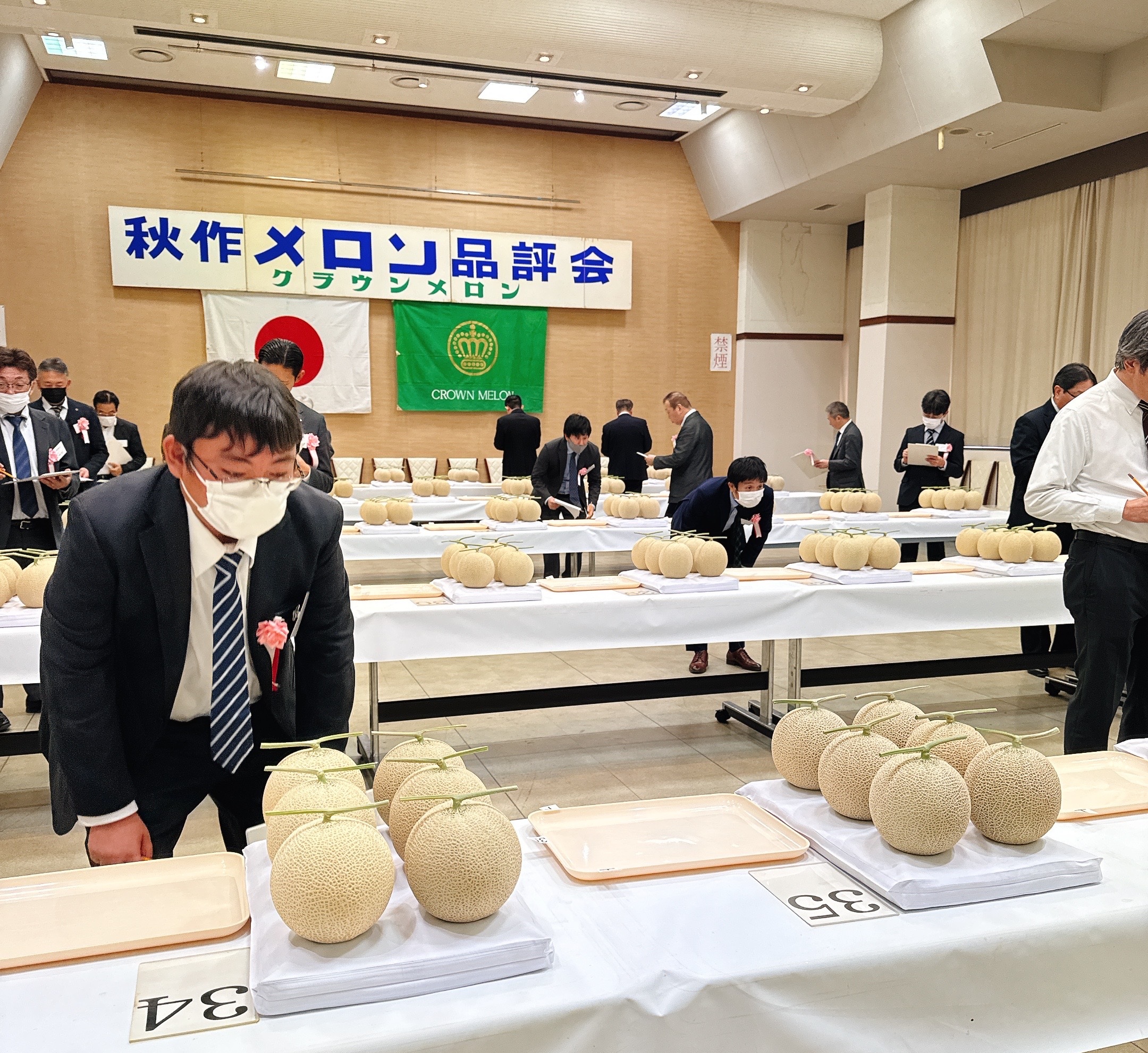 品評会には、クラウンメロンの生産者が丹精込めた自信作が出品され、